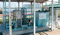 米子施設区では、西鳥取車両支部の排水処理装置の老朽取り替えにおいて、環境に配慮した検討を行い、エネルギー消費量が少ない電解処理方式を採用しました。