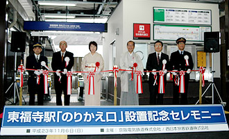 平成23年11月、京阪電車とJR奈良線との接続駅である東福寺駅に「のりかえ口」を設置し、観光客をはじめとした利用客の利便性を向上させ、公共交通の利用を促しています。