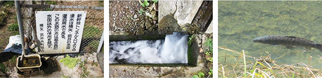 山陽新幹線、徳山・新山口間の富田トンネルを流れる湧水を、地域の水田の灌漑用水、農業用水にご利用いただいています。放流先である富田川流域(山口県周南市)には鯉やホタルが生息しています。