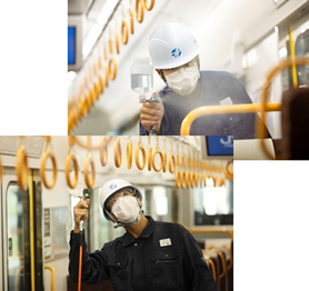 抗菌加工は目に見えないからこそ、いつも以上にご乗車されるお客様を意識して、安全・安心への思いを込めて作業にあたっています。