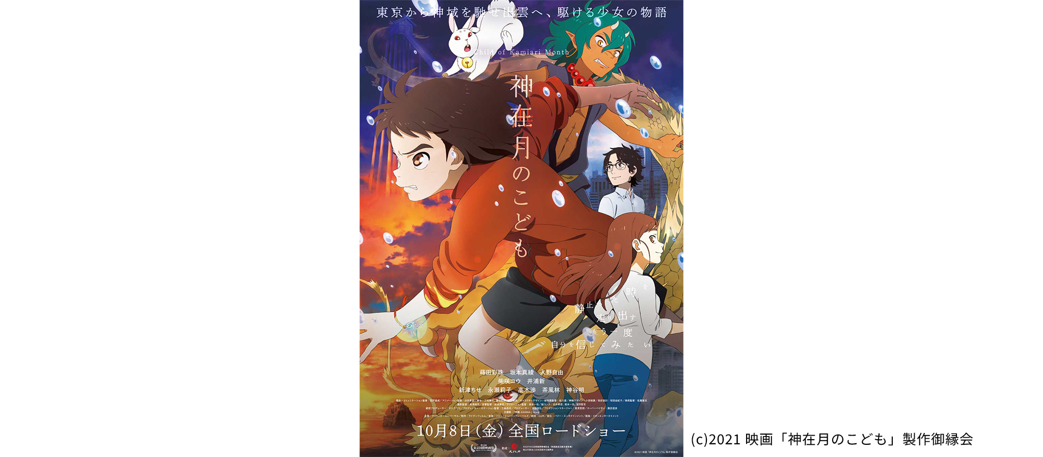 旧暦の10月は、島根県出雲地方では「神在月」と呼ばれ、全国から神々が集まると言われている。この言い伝えをテーマに、少女が東京から出雲へ走り成長していく姿を描いたオリジナルアニメーション映画が「神在月のこども」。Jコミは製作委員会に参画し、TVCMやキャンペーン事務局の運営など映画の広告・広報PRを担当。また、出雲市による観光PRにも携わり、「神在月のこども」とタイアップした出雲地方の観光プロモーションを国内外に向けて展開した。