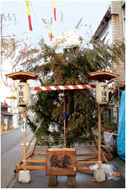 | 勝山左義長祭は、緑の松と青竹で組んだ御神体を設ける。 |