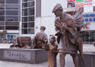 | 富山駅前にある「富山のくすりやさん」のモニュメント。得意先に薬を預け、使った分の代金をあとから回収する商法は富山の薬を全国に浸透させた。 |
