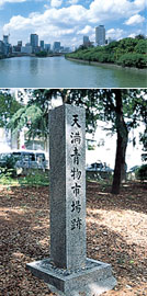 大坂夏の陣(1615(慶長20)年)以後の経済復興では、それまで以上に人口が集中し、商業が栄え、町は大いに賑わった。大川の水運を利用して海産物やさまざまな物資が流通し、とくに大川端の天満青物市場は「天下の台所・大坂」の商いの中心地として、日本経済を動かしていた。その活況もいまは河岸の遊歩道に立つ市場跡の石碑に偲ばれるだけである。