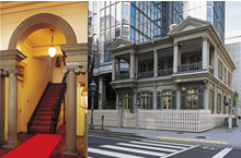 | 旧居留地十五番館。1882(明治15)年頃の築で旧居留地内で最古の洋館。木骨レンガ造り2階建ての塗り壁仕上げで、様式は17〜18世紀のイギリスの植民地で流行したコロニアルスタイル。アメリカ領事館として使われていた。阪神・淡路大震災で倒壊したが、復元再生され、現在はレストランとして使われている。 |