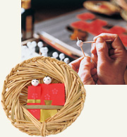 | 素朴な容姿と因州和紙の鮮やかな彩色が特徴の流しびなは、民芸品としても人気が高い。現在は、町の老人会が主体となり、藁や紙粘土などの原料の調達から制作までを行っている。