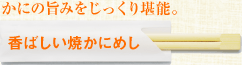 かにのだし汁だけで素朴に炊き込んだごはんに、直火で殻ごとあぶった焼きがにがのった、かにの風味を満喫できる弁当。(番匠本店/1,200円)