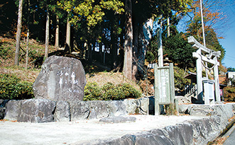 多くの清張ファンが訪れるようになったという亀嵩地区。ロケ地のひとつ湯野神社の参道入り口には、清張直筆の文字が刻まれた『砂の器』記念碑が立つ。