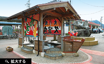浜坂駅前にある足湯。町の中にある浜坂温泉源泉塔から湧く湯は、旅館はもちろん家庭にまで給湯され、蛇口をひねればいつでも温泉に入ることができる。