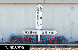 神戸駅構内にある「0キロポスト」。神戸駅は東海道本線と山陽本線の境界駅。
