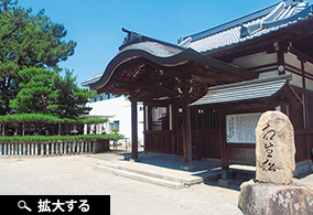 加古川駅からバスで15分の場所にある高砂神社。古くから謡曲・能「高砂」の舞台として知られ、境内にある“相生松(あいおいのまつ)”は、縁結びの象徴として知られる。