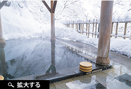 屋外の女性用露天風呂。県定公園に指定されている庄川峡の四季折々の景観に抱かれながら、天然温泉に癒やされる。