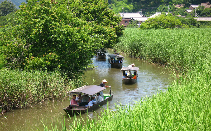 The Omi-Hachiman suigo canals are known as one of the three great canal networks of Japan, and are of particular note even among the three due to retaining their natural, historic state even today. Feel the natural history of Japan all across your body while enjoying a gentle rowboat cruise along the canals.