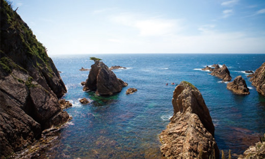 Uradome Coast is a magnificent coastline with unique terrain shaped by the rough waves of the Sea of Japan. Enjoy the natural scenery up close through a variety of marine activities, from enjoying a ride on a sightseeing boat to witnessing the incredibly clear water of the sea in a see-through canoe or through snorkeling.