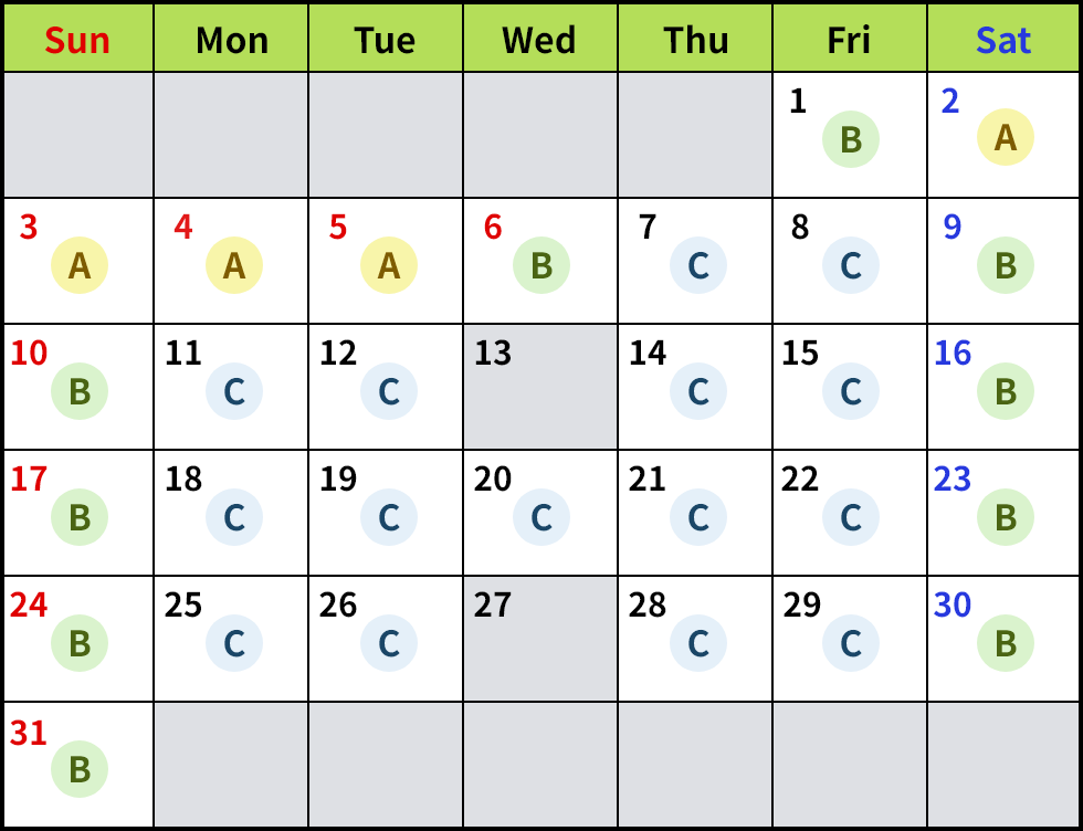 | Regular individual | 1,000yen | 800yen | 500yen | 500yen | 500yen |