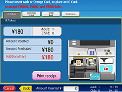 일부 자동발매기는 목적지의 역 번호와 역명을 이용해 티켓을 구입할 수 있습니다.