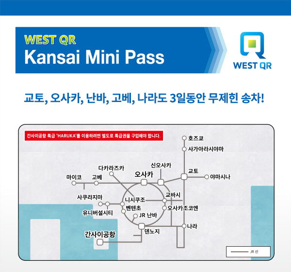 WEST QR간사이 미니 패스를 사용할 수 있습니다.
