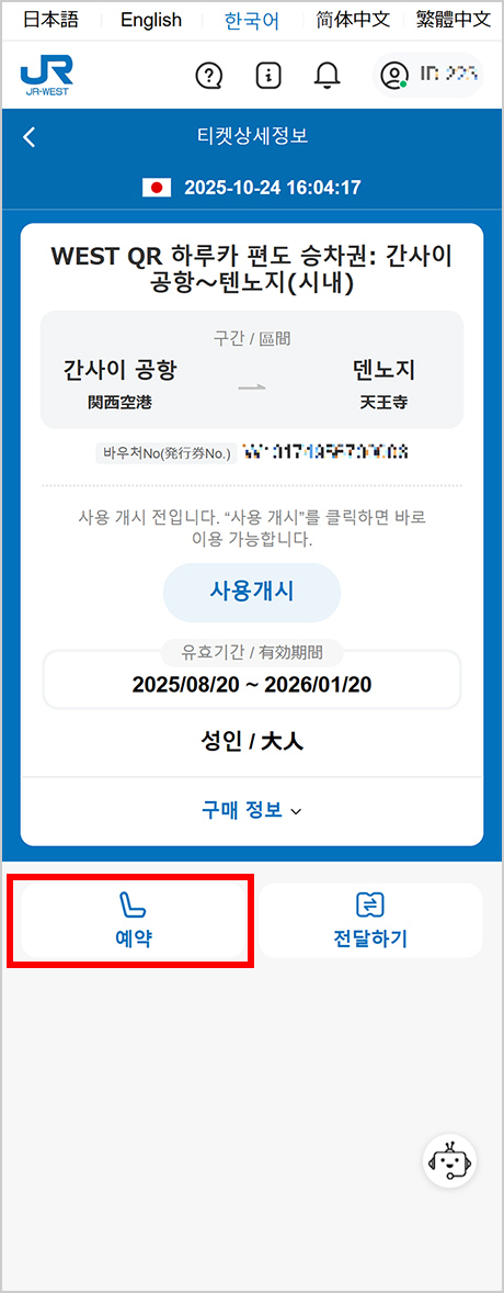 * WEST QR을 처리하고 추가 구입 티켓을 확인합니다.