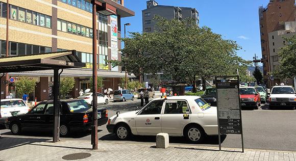 택시 승차장 옆을 빠져나와 좌회전합니다.