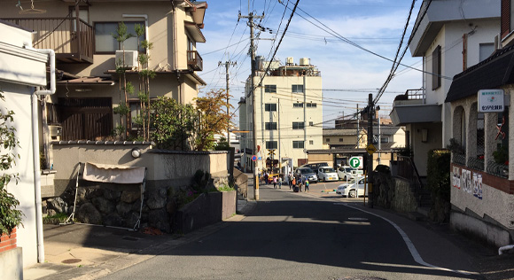 从JR“太秦站”出站后继续前行,然后右转穿过铁路道口。