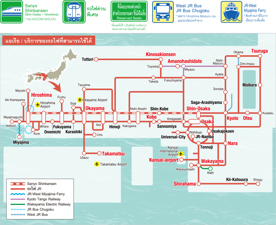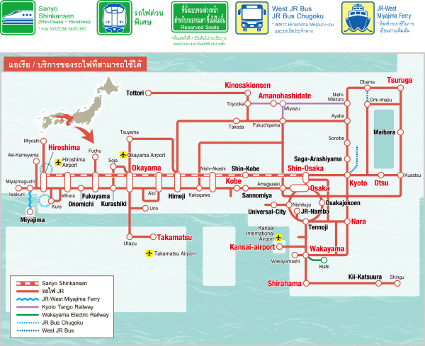 - รถไฟหัวกระสุน "SANYO SHINKANSEN" (Shin-Osaka ⇔ Hiroshima) ที่นั่งแบบจองล่วงหน้า
