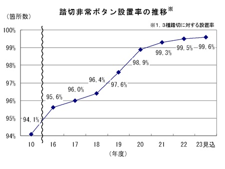 平成20年度にスタートした安全基本計画の中で、私どもは平成19年度と比較して踏切障害事故を3割減少させることを目標に取り組んでまいりましたが、22年度までで見ると、19年度が60件、22年度が32件とほぼ半減しております。さらに今年度も12月末の段階で26件と、私どもの対策が功を奏しつつあると考えております。