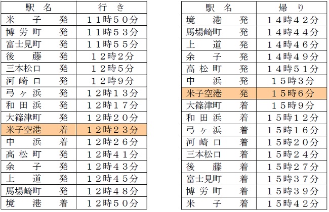○臨時列車運転時刻
