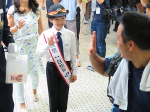 平成27年8月11日、キャンペーンイメージキャラクターの「本田望結」さんに京橋駅の1日駅長をつとめていただき、「お酒に酔ったお客様」「暑さによる体調不良のお客様」「若年層のお客様による悪ふざけ」に気をつけていただくよう啓発活動イベントを開催しました。また、ホームの安全性向上の一環として京橋駅で導入を進めておりました遠隔セキュリティカメラにつきましても、同日より使用開始となりました。