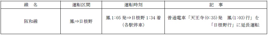 2 大晦日終電後に臨時列車を運転する区間と概要 以下の区間では、終夜運転は行わず、次の臨時列車を運転します。