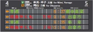 ・LED発車案内標・自動案内放送(瀬戸〜糸崎駅間、赤穂線内 西大寺駅)