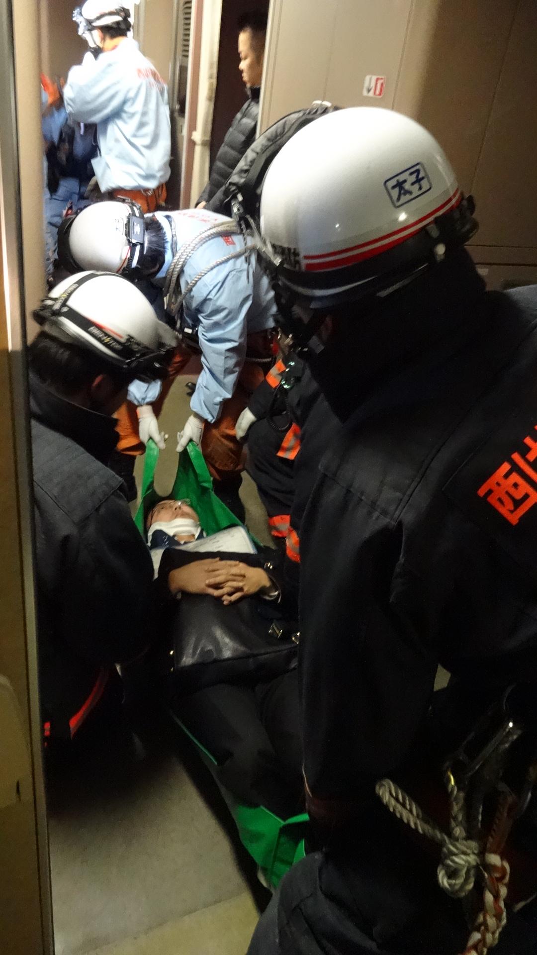 当社では、「安全考動計画2017」に基づき「安全を最優先する企業風土の構築」に取り組んでいます。その一環として、社員の安全意識の向上と人命最優先の考動を実践するべく、より迅速なお客様の救護や復旧ができる体制の検討と整備を確認することを目的に、警察・消防関係の皆様のご協力のもと、お客様救護訓練を実施しました。