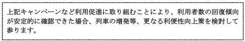 自転車を折り畳まずに列車に乗車できるサイクルトレインについて、11月に実施した「きのかわサイクルトレイン号」の運転期間拡大や、きのくに線における新たなサイクルトレインの設定などを検討してまいります。