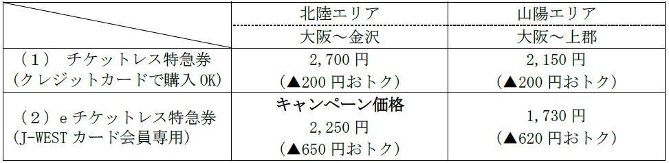 (2)「eチケットレス特急券」:J-WESTカードをお持ちのお客様が購入可能。