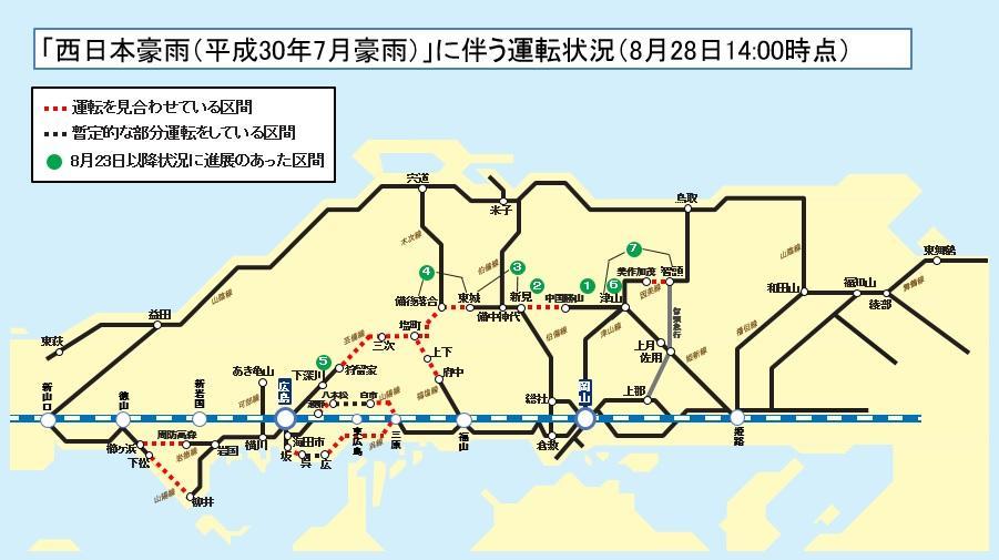 このたびの「西日本豪雨(平成30年7月豪雨)」の影響で、引き続き多くの線区で運転見合わせが発生しており、ご利用のお客様にはご迷惑をおかけしていることをお詫び申し上げます。