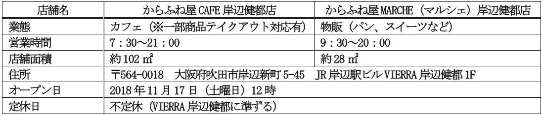 このたび、株式会社ジェイアール西日本フードサービスネットは、新たに開業する商業施設「VIERRA岸辺健都」に、カフェ「からふね屋CAFE」と、人気ショップの食パンやプリンなどを販売するセレクトショップ「からふね屋MARCHE(マルシェ)」を11月17日(土曜日)にオープンいたします。