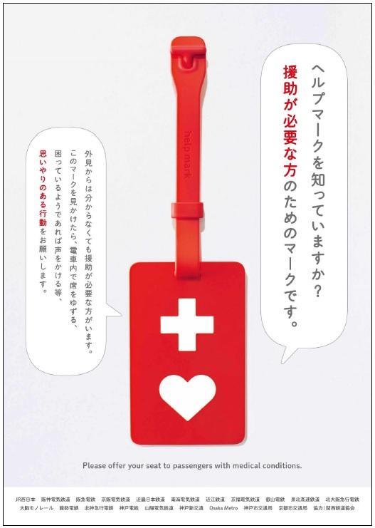 関西の鉄道事業者20社局は、安心・快適に公共交通機関をご利用いただくための取り組みの一環として、2019年1月9日(水曜日)から2月8日(金曜日)をコア期間として「ヘルプマーク」についてのポスターを掲出します。