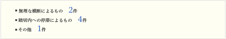- :踏切道において、列車又は車両が道路を通行する人又は車両等と衝突し、又は接触した事故