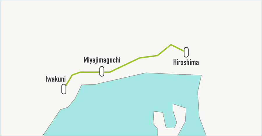 Departure/arrival station Arrival time Departure time Iwakuni 17:00 Miyajimaguchi 17:23 17:45 Hiroshima 18:14 * Times are subject to change.